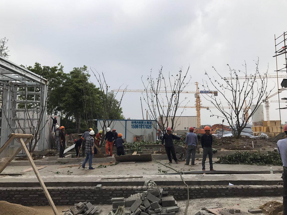 張家港金港鎮(zhèn)張地2013-B74-B地塊示范區(qū)景觀工程施工現(xiàn)場(chǎng)